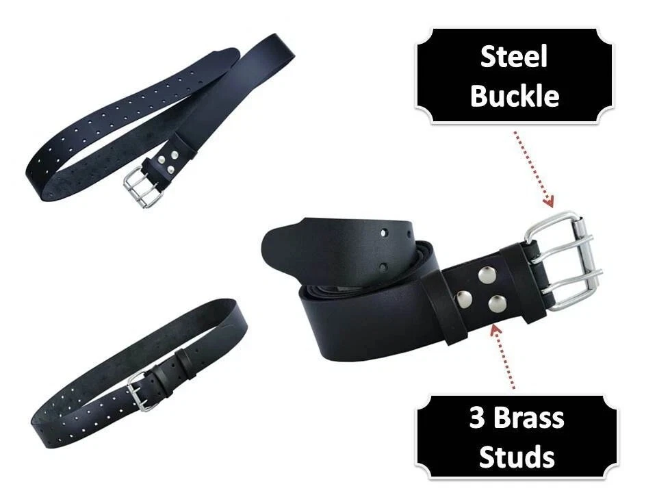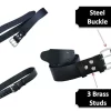 Genuine Black Leather with corrosion-resistant brass studs and steel buckle